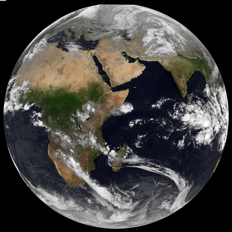 Mapa satélite Océano Índico